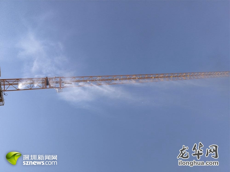 深圳新聞網4月12日訊 (記者 彭桂紅 通訊員 耿容 柯遵群)日前,在觀瀾街道地鐵四號線4302標段施工工地上空,四套高聳的塔吊噴霧系統格外引人注目,四臺高空噴淋“神器”同時天降“甘露”,形成一道蔚為壯觀的景象,而這套由觀瀾街道辦與地鐵施工方集思廣益共同想出的嶄新妙招,有望成為觀瀾乃至深圳在建工地降塵新舉措。