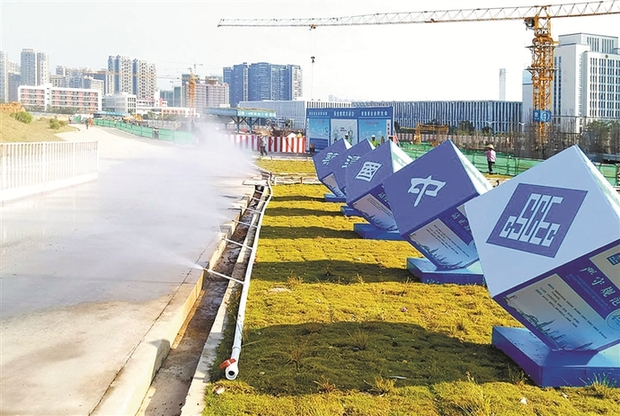 ▲工地安裝噴霧噴淋系統(tǒng)。