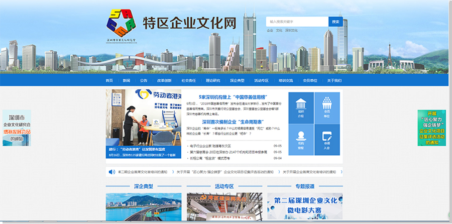 案例介紹:特區(qū)企業(yè)文化網(wǎng)是由深圳市企業(yè)文化研究會(huì)主辦,深圳新聞網(wǎng)承辦的關(guān)于特區(qū)企業(yè)文化傳播的網(wǎng)站。