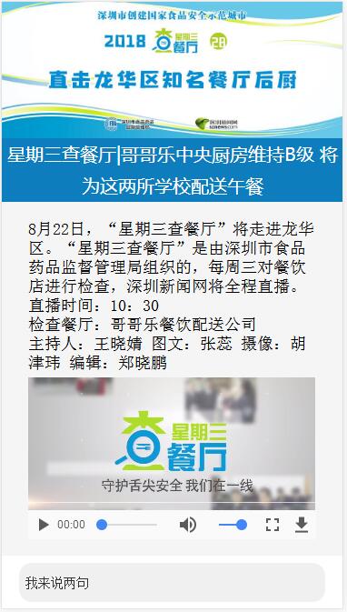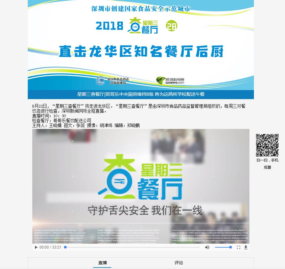 “星期三查餐廳”節(jié)目組采用深圳新聞網(wǎng)直播平臺,記者使用手機或攝像機進行拍攝,照片、直播視頻、文本內容等回傳后方編輯,編輯在直播平臺上進行內容整理,將執(zhí)法行動全程進行視頻+圖文全程直播。網(wǎng)友無需下載任何客戶端,可通過Internet直接在PC、移動客戶端等設備上實時觀看執(zhí)法過程,并能在線對直播內容進行評論。