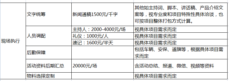 3、后勤保障:舉辦大型活動(dòng)時(shí),為了保障嘉賓安全,渲染現(xiàn)場氣氛,通常需要有一系列的車輛、安保、道路指引旗幟等工作。深圳新聞網(wǎng)擁有豐富的大型現(xiàn)場活動(dòng)把控經(jīng)驗(yàn),特別是與相關(guān)部門,如城管、公安、交通等主管職能機(jī)構(gòu)溝通、協(xié)調(diào)、策劃的能力,保障活動(dòng)安全,萬無一失。具體費(fèi)用需要依據(jù)項(xiàng)目的規(guī)模、時(shí)長、等級來具體商議。