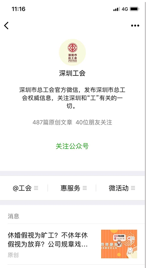 案例介紹:“深圳工會”是深圳市總工會官方自媒體,2015年上線,目前用戶數(shù)20萬。致力于打造集“工會發(fā)聲平臺”“工會工作者掌上寶典”“指尖上的職工之家”為一體的新媒體平臺。堅持以職工為中心,體現(xiàn)工會特色,運用“互聯(lián)網(wǎng)+工會”思維,遵循新媒體傳播規(guī)律,突出公益性、服務(wù)性,采取社會化運營方式,整合資源,與知名媒體聯(lián)動,注重實用性和互動性。適應(yīng)職工需求,開展豐富的線上線下活動,活動參與人次達500萬。作為深圳工會新媒體的龍頭,積極提供業(yè)務(wù)指導(dǎo)和技術(shù)支撐,形成覆蓋百萬職工的工會新媒體矩陣。