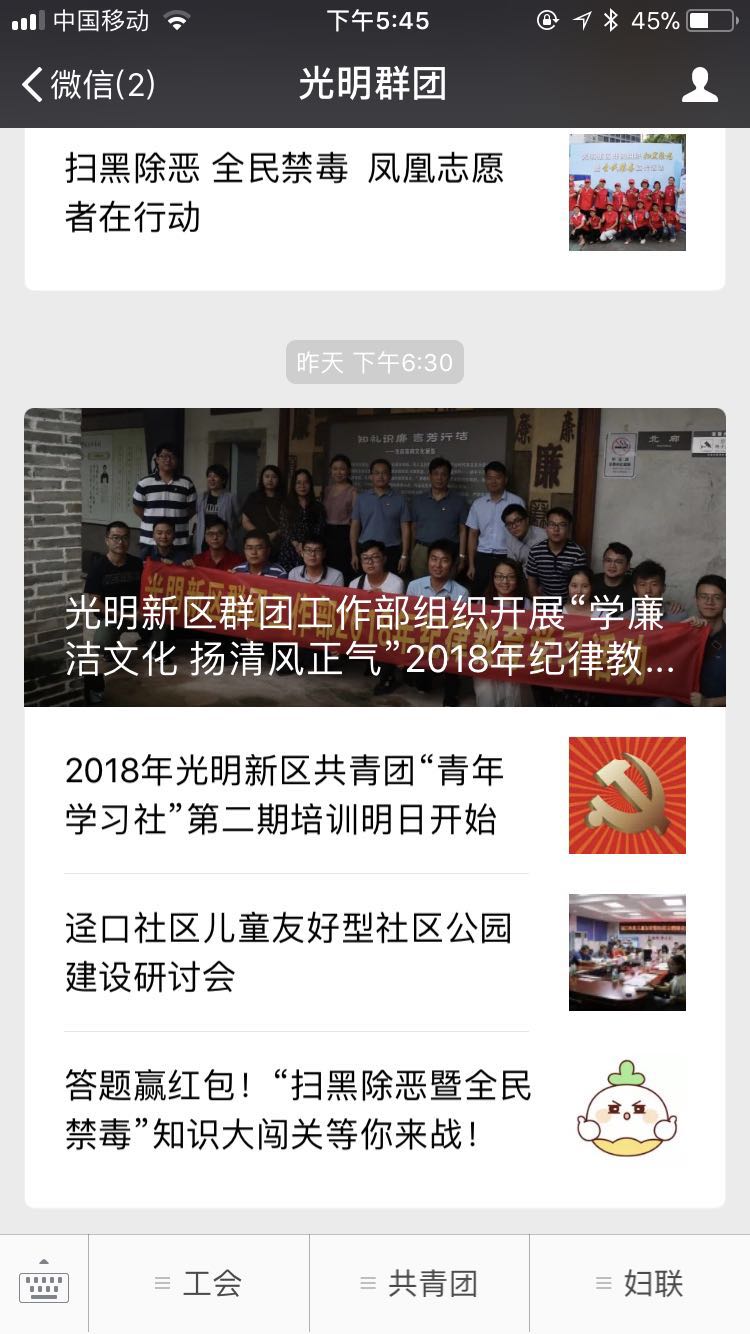 案例介紹:深圳市光明新區(qū)群團(tuán)工作部公眾賬號,包括光明工會(huì)、光明團(tuán)委、光明婦聯(lián),發(fā)布新聞資訊、提供便捷服務(wù)。