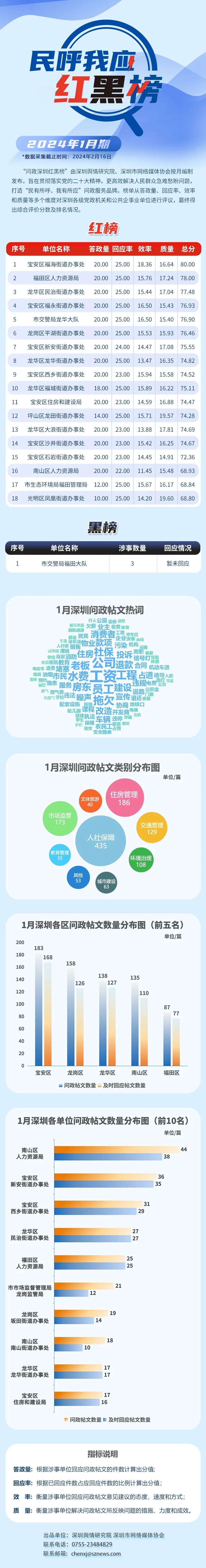 據(jù)悉,本期榜單采集的帖文主要來自深圳論壇、深圳各區(qū)政府官網(wǎng)、人民網(wǎng)領(lǐng)導留言板等平臺,所采集帖文發(fā)布時間為2024年1月1日至1月31日。