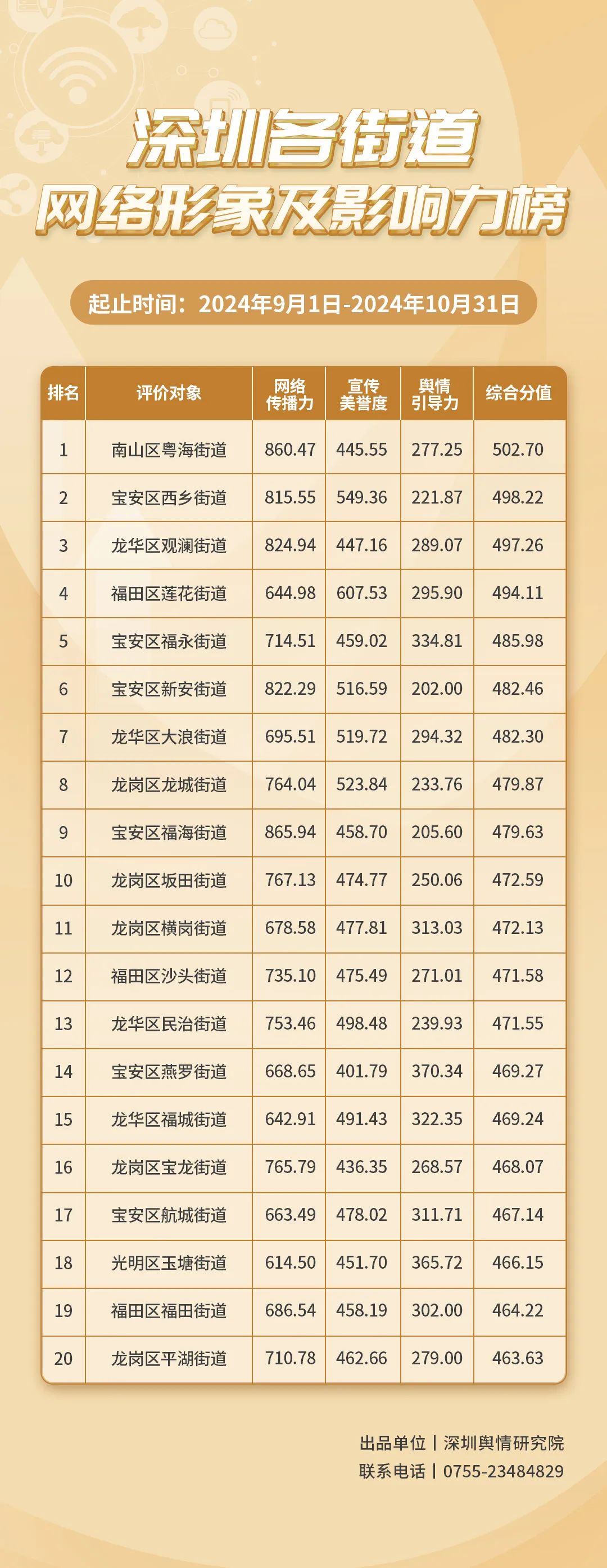 2024年9-10月,各街道不斷探索治理新路徑,力求效能躍升,《深圳各街道網絡形象及影響力榜》為您揭曉哪些街道網絡形象治理實效顯著,成標桿,本期榜單數(shù)據統(tǒng)計范圍為2024年9月1日至10月31日。