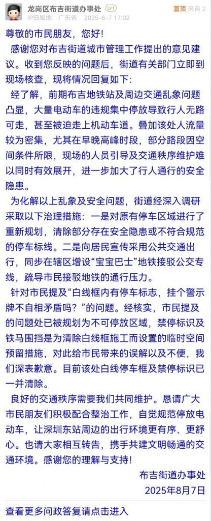 良好的交通秩序需要我們共同維護。懇請廣大市民朋友們積極配合整治工作,自覺規(guī)范停放電動車,讓深圳東站周邊的出行環(huán)境更有序、更舒心。也請大家相互轉告,攜手共建文明暢通的交通環(huán)境。感謝您的理解與支持!
