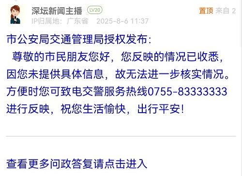 各職能單位如需對網(wǎng)友反映的問題進行回應,可在深圳論壇注冊官方賬號并通過認證,回帖進行回應。