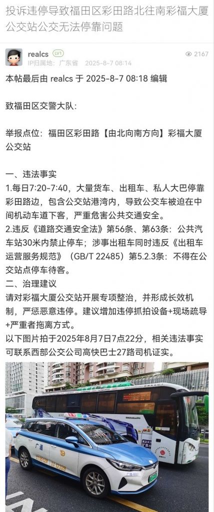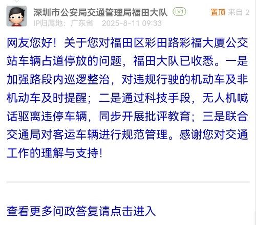 16. 帖文《投訴違停導致福田區(qū)彩田路北往南彩福大廈公交站公交無法停靠問題》